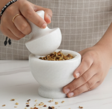 This mortar and pestle was really good at grinding without having to go over and over ad infinitum. It's very heavy so you don't have to strain your arm/wrist to get the grind size you want. Not to mention the stone is absolutely gorgeous!! I bought the matching salt cellar for on top of my stove, it was so pretty. This would be more than two thumbs up^^ if I had more!! definitely a GREAT review from me, too!!